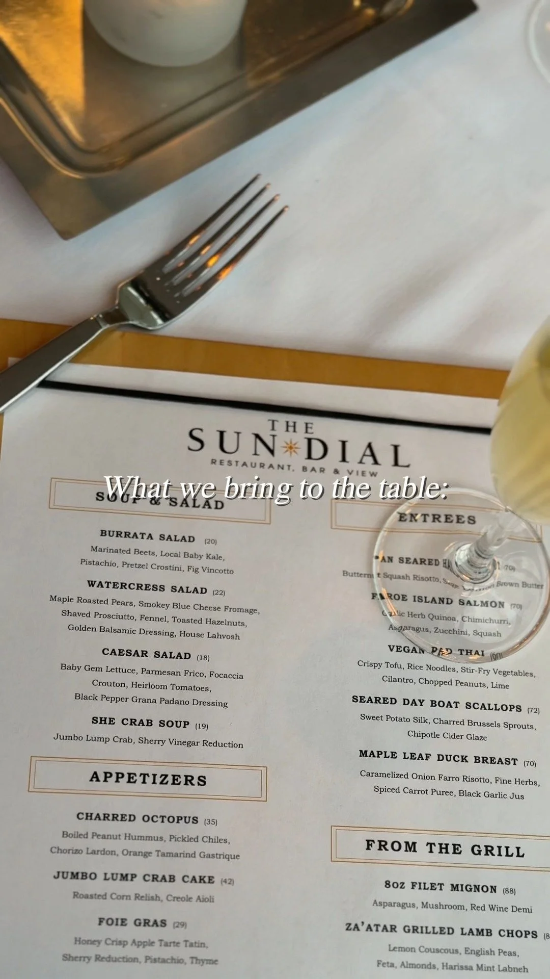 A fresh twist on Atlanta dining, The Sun Dial Restaurant features seasonal, contemporary American cuisine.